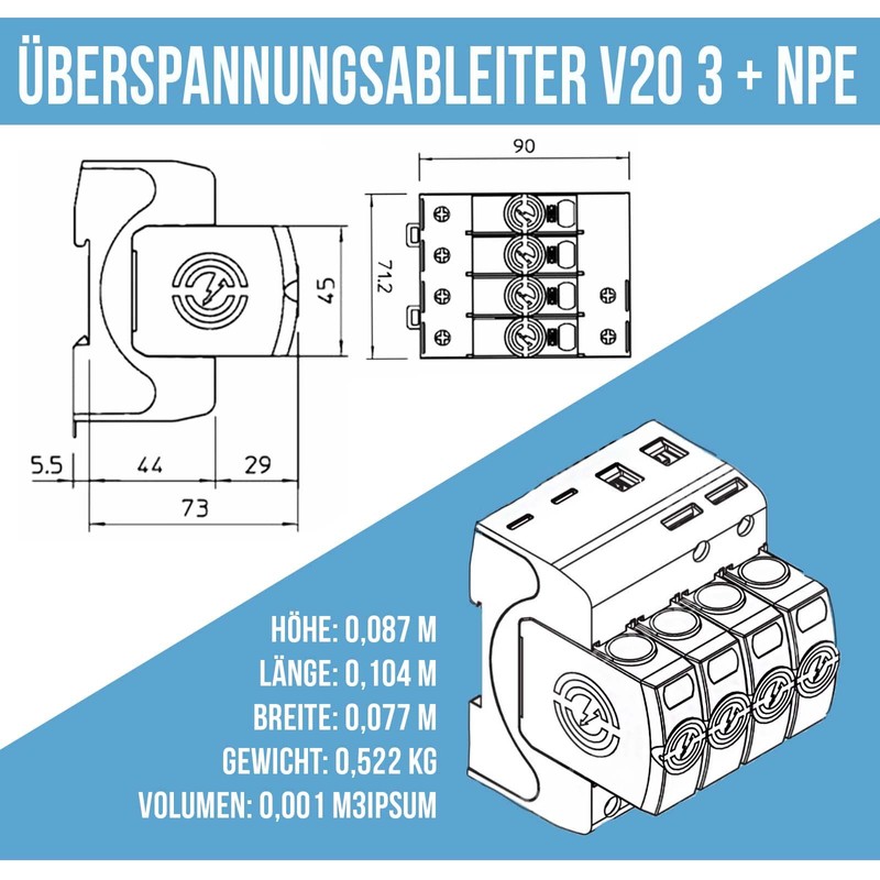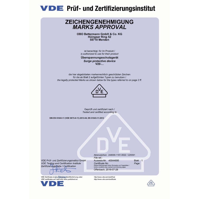 OBO Bettermann SurgeController V20 V20-3+NPE-280 Three-Pole with NPE Surge Arrester for Power Engineering / Power Supply 4012196161331