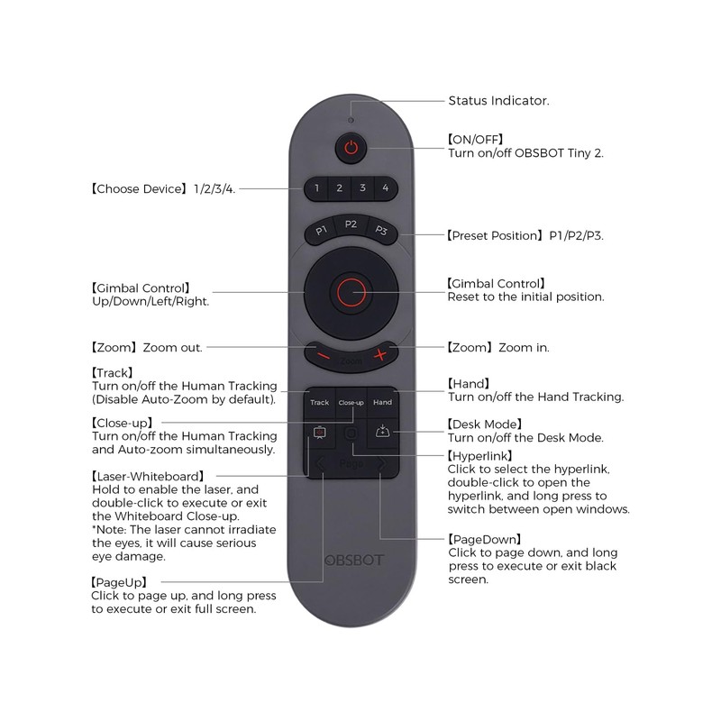 OBSBOT OBSBOT Tiny 2 Remote Control, Smart Remote for Tiny 2/Tiny 4K/1080P Webcam, Wireless Connection via USB Receiver, Combination of Remote Control and Presentation Clicker