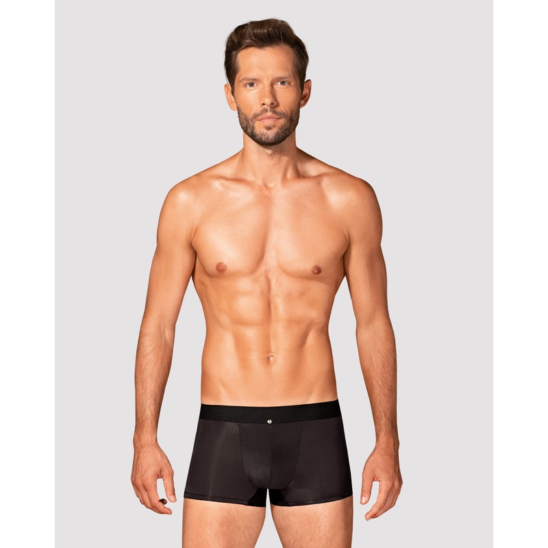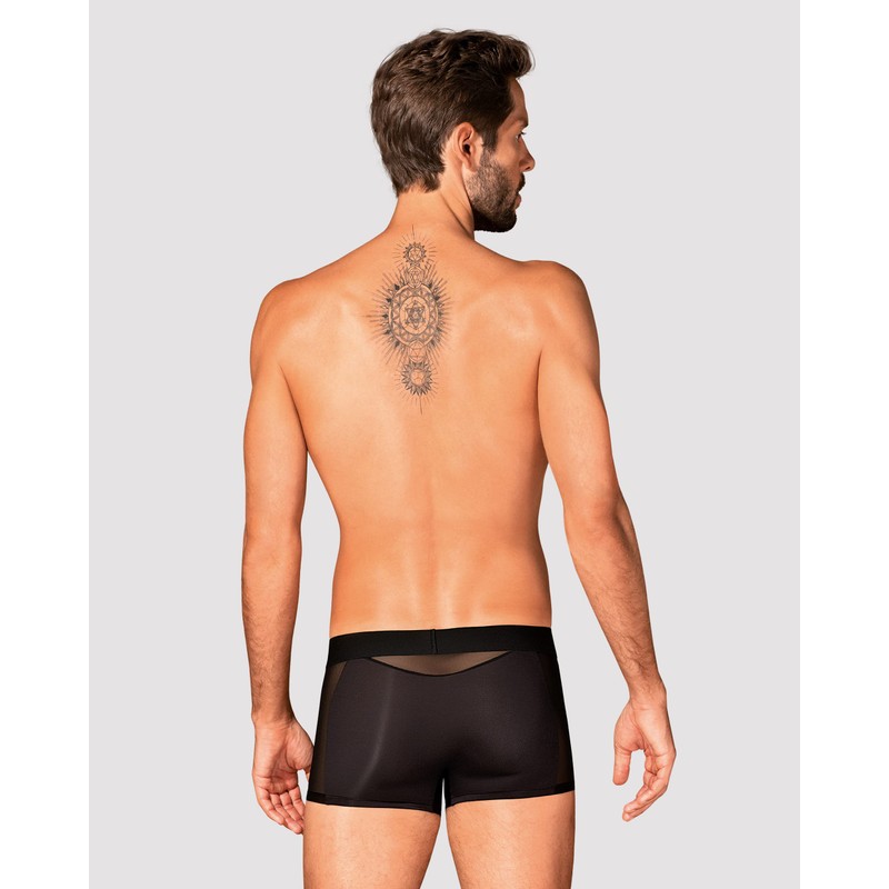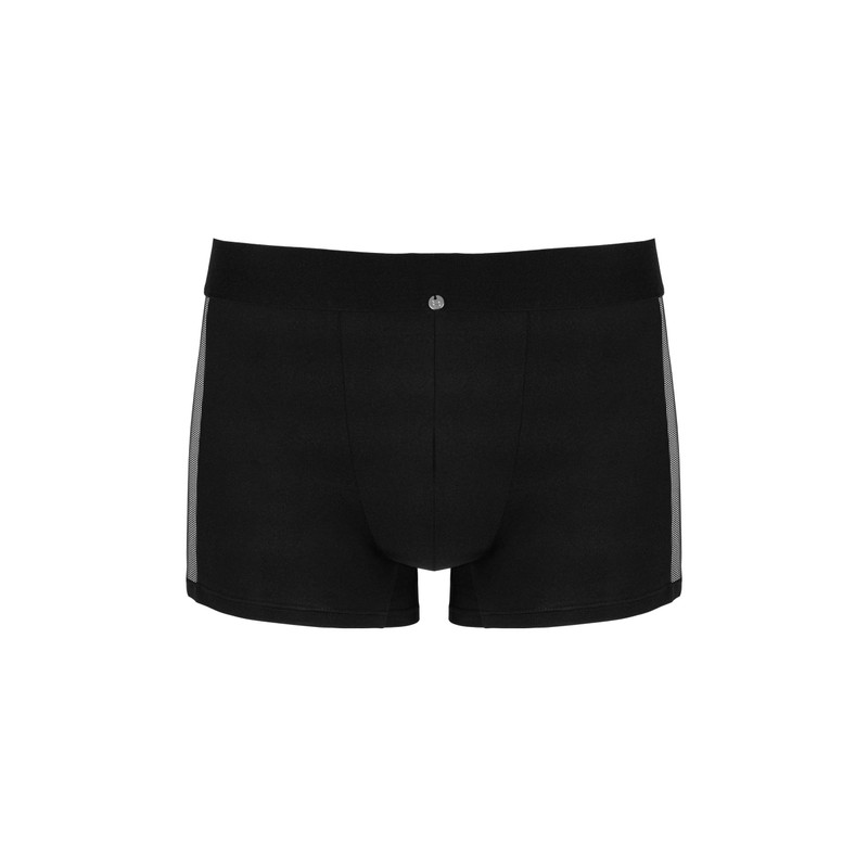 - Black boxer shorts in a high-quality combination of opaque material and translucent mesh on the sides and above the buttocks