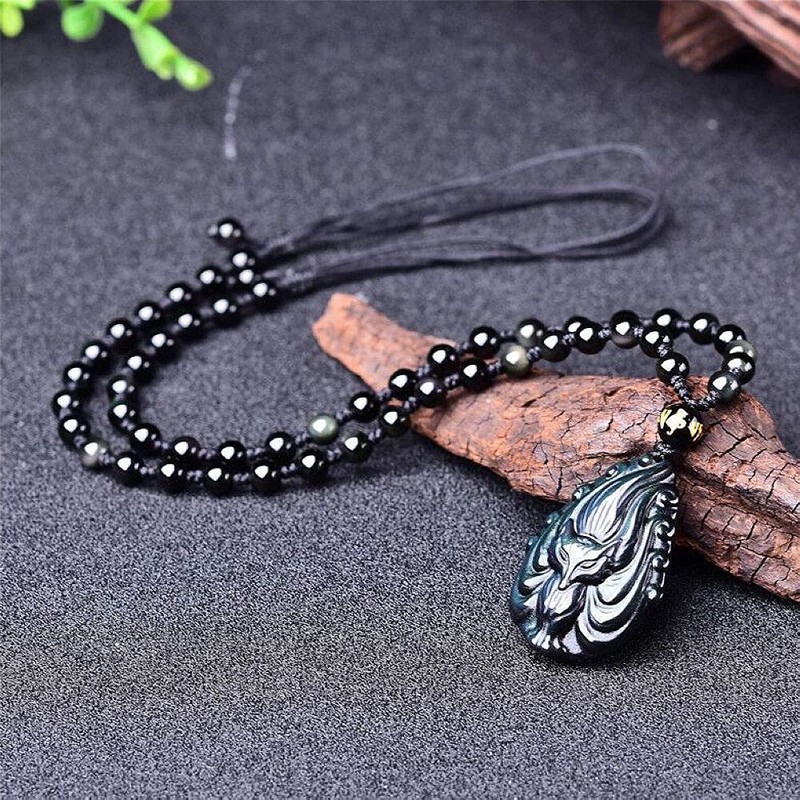 Obsidian crystal nine tail fox pendant necklace with bead chain for wen or women