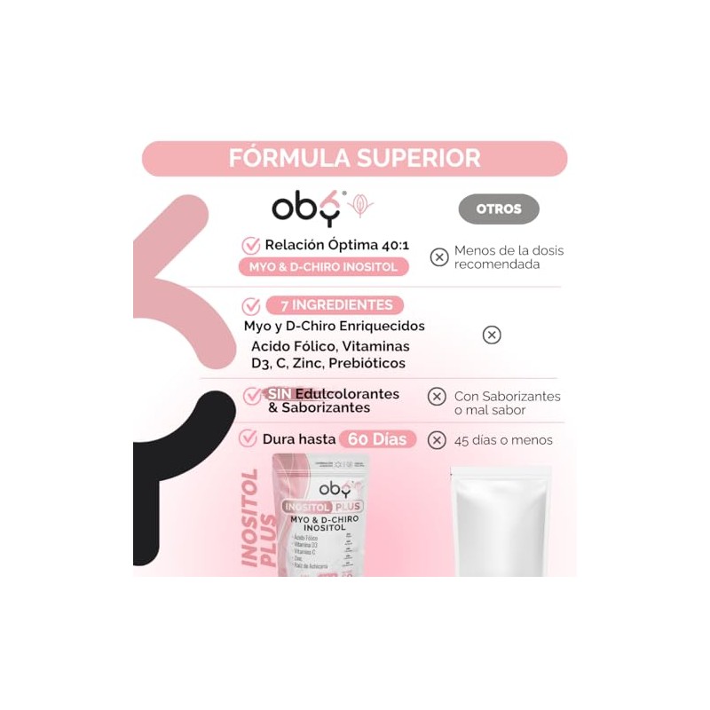 OBY - Oby Inositol Plus | Myo Inositol y D-Chiro Ratio 40:1 | 120 tomas | con Acido folico + Zinc + Prebioticos + Vitaminas Mujer | 120 días | Suplemento Alimenticio | 2 Bolsas Polvo Total 600 g. ⭐ Calidad premium certificada con excelentes reseñas. Diseño ergonómico y funcionalidad excepcional. ⭐ Miles de reseñas positivas. Ideal para quienes buscan lo mejor en calidad y estilo. Producto auténtico con satisfacción total asegurada. ¡No te quedes sin el tuyo y aprovecha esta oportunidad única!