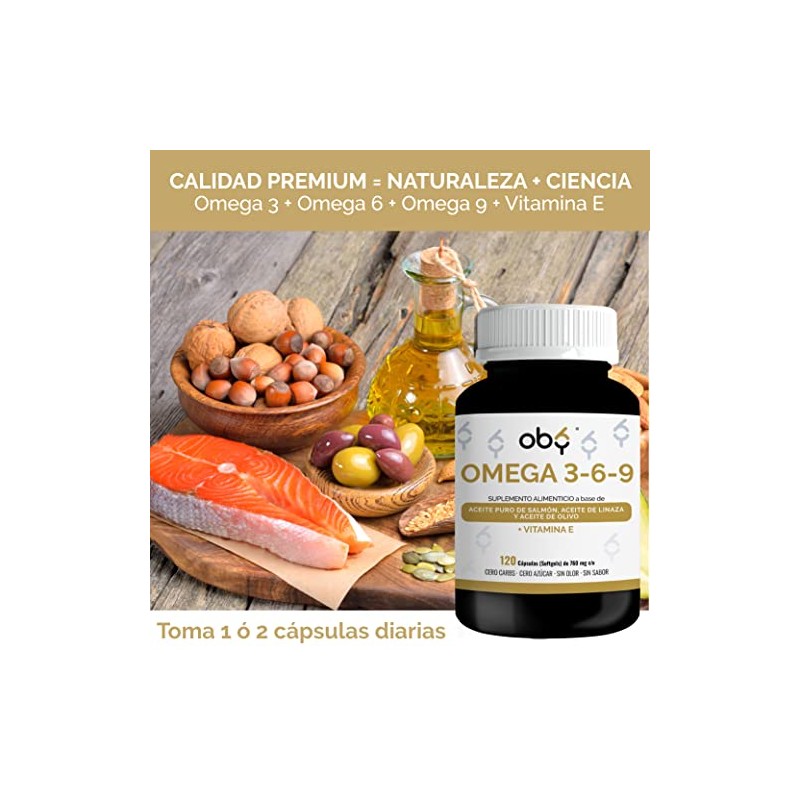 OBY - OBY Omega 3 + Vitamina E, Omega 6 y Omega 9. 120 Softgels. Omega 3 6 9 capsulas: Aceites Puros de Salmon, Linaza, Olivo, con DHA y EPA. Sin metales pesados. Suplemento alimenticio Sin sabor y Sin olor. 💯 Autenticidad y máxima durabilidad comprobadas. Materiales de alta gama y acabados premium. ⭐ Miles de reseñas positivas. Ideal para quienes buscan lo mejor en calidad y estilo. Producto auténtico con satisfacción total asegurada. ¡No te quedes sin el tuyo y aprovecha esta oportunidad única!