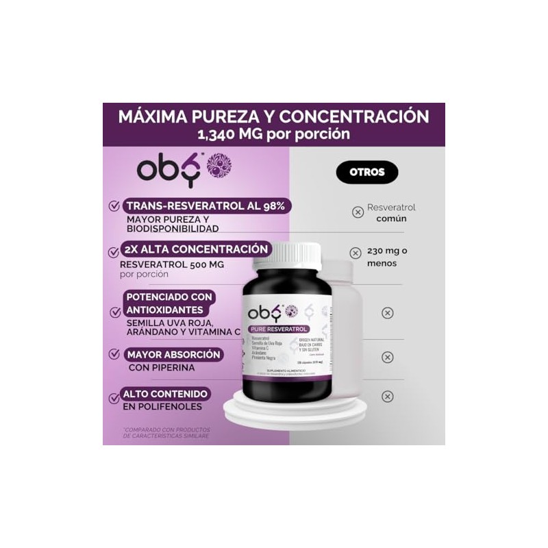 OBY - Oby Resveratrol Puro 120 Capsulas | 1300 mg porcion de Antioxidantes: Trans-Resveratrol al 98%, Semilla de Uva Roja, Arándano, Pimienta Negra y Vitamina C | 100% Vegano. ✅ Diseño innovador que supera las expectativas. Diseño ergonómico y funcionalidad excepcional. 💎 Calidad superior certificada. Ideal para quienes buscan lo mejor en calidad y estilo. Producto auténtico con satisfacción total asegurada. ¡No te quedes sin el tuyo y aprovecha esta oportunidad única!