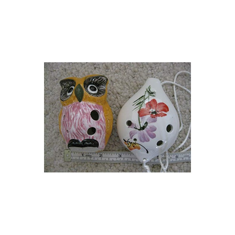 Ocarina Combo Offer: One Ceramic Owl Pattern Ocarina & 6 Holes Pear Shape floral pattern ceramic Alto-C ocarina. Very Artful Design Pattern. Good Sounding - Voluminous and Warm Sounding.
