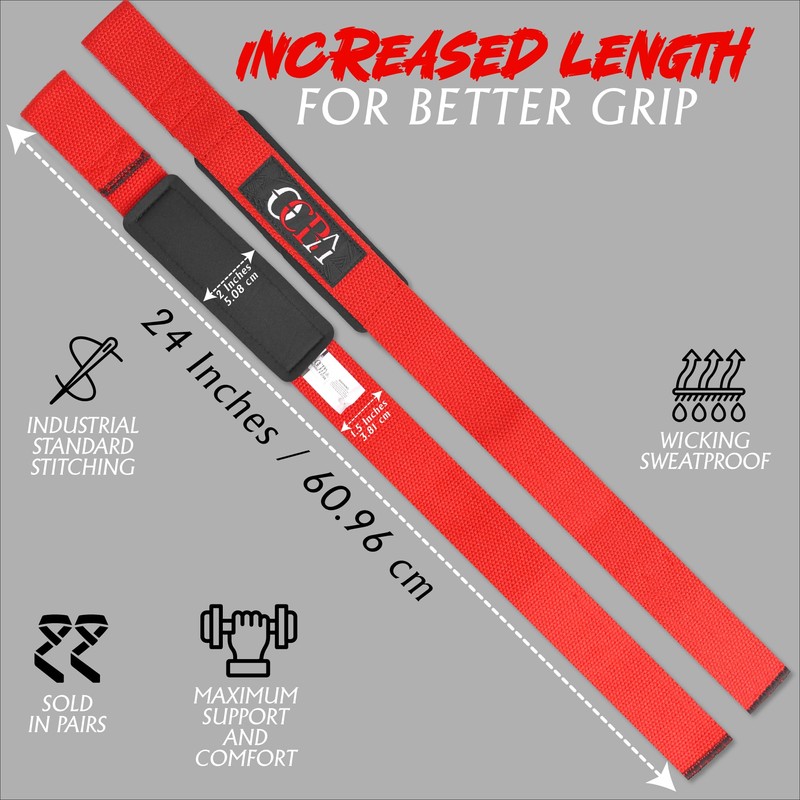 - Extended Wrist Strap Length: Lifting Straps with Extended Length to Improve Performance Allowing You to Wrap the Hand Supports Multiple Times Around the Bar Giving You the Best Possible Grip.
