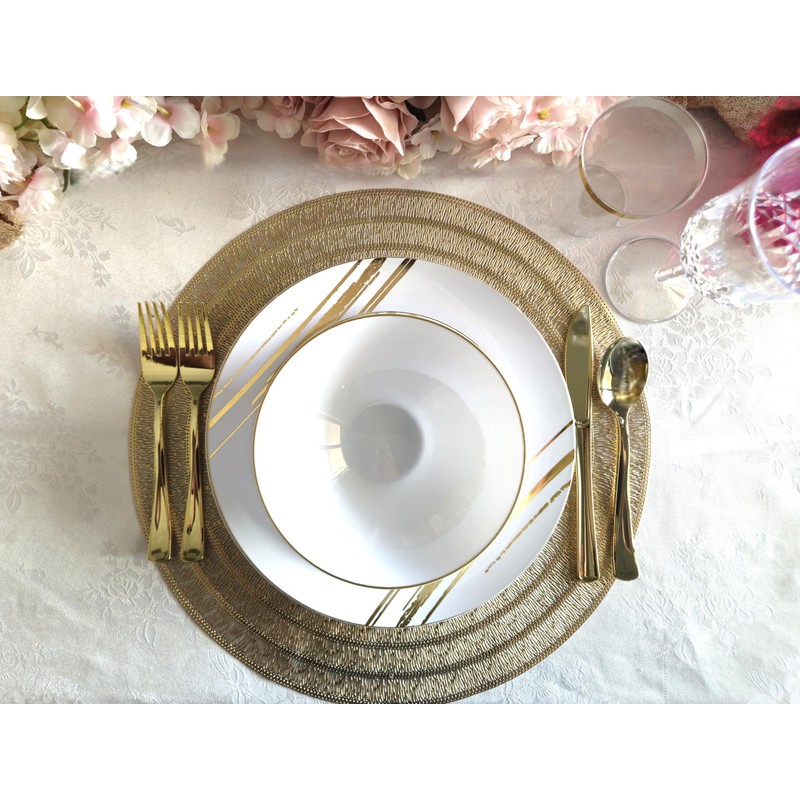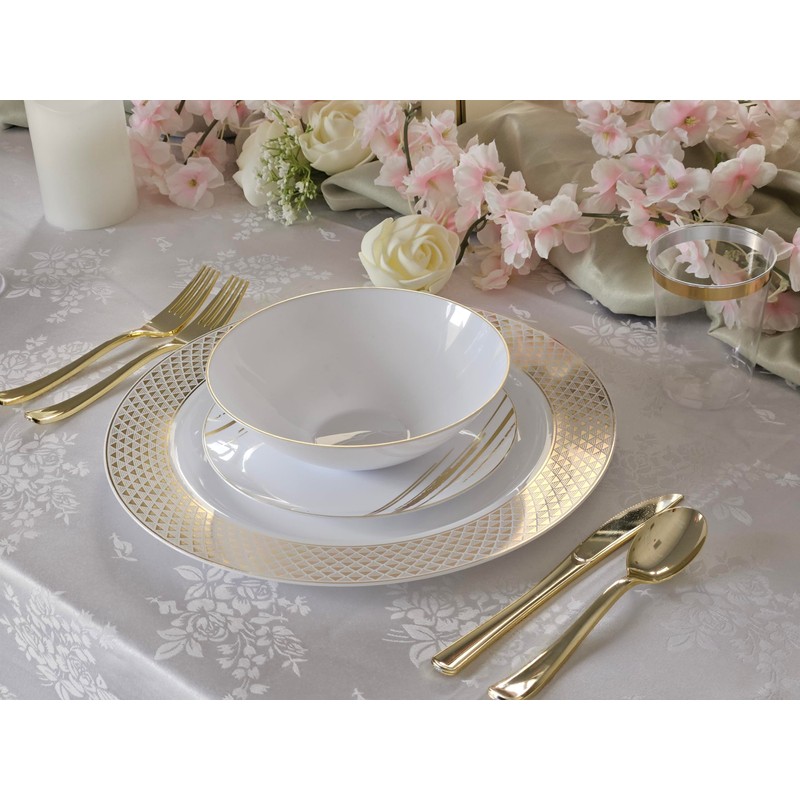 - Looks like real china. Ideal for holidays, large gatherings, weddings and special events, where you want an elegant and fancy look with the convenience of disposable.