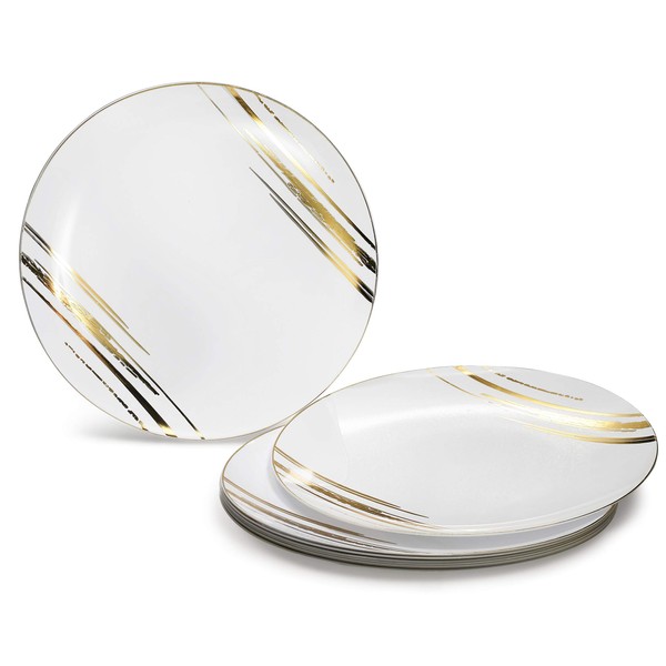 " OCCASIONS " 120 Plates Pack, Disposable Wedding Party Plastic Plates (7.5'' Appetizer/Dessert Plate, Dali, White & Gold)