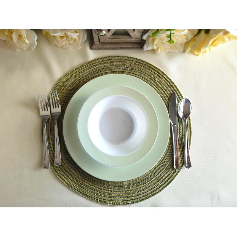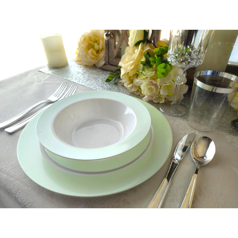 " OCCASIONS " 240 Plates Pack, Disposable Wedding Party Plastic Plates (10.5'' Dinner Plate, Rio in White & Pearled Green)