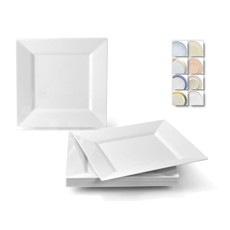 " OCCASIONS " 40 Plates Pack, Heavyweight Disposable Wedding Party Plastic Plates (8'' Appetizer/Dessert Plate, Square white)