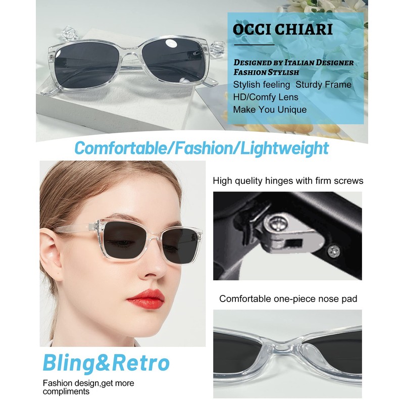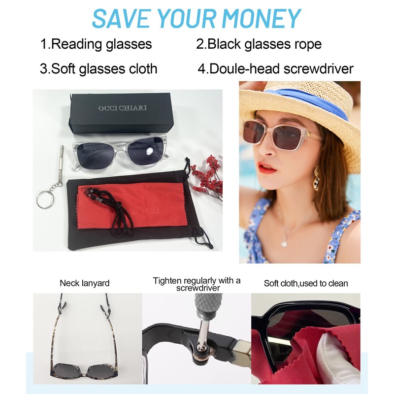 OCCI CHIARI Bifocal Reading Sunglasses Womems Big Blue Light Blocking Sun Readers Outdoor UV400 1.0 1.5 2.0 2.5 3.0 3.5(Clean 100+)