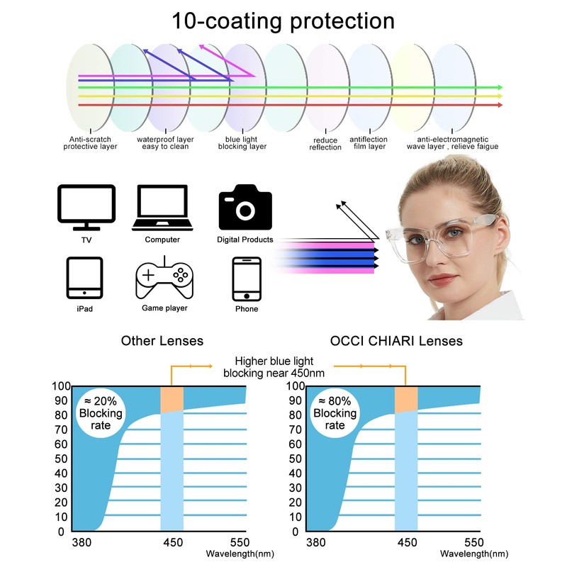 OCCI CHIARI Blue Light Reading Glasses for Women Computer Oversized Readers 0 1.0 1.5 2 2.5 3 3.5 4.0 5.0 6.0 (Clear, 1.0)