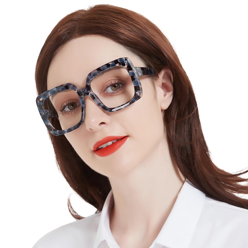 - OVERSIZED&COMFORT:Oversized "nerd" reading glasses,These rectangle reading glasses feature a strong square lens shape,chunky lines,super flattering design that will instantly update any look;metal spring hinge have a slight stretch to accommodate various head sizes;nose bridge is snug,and don't slip like others