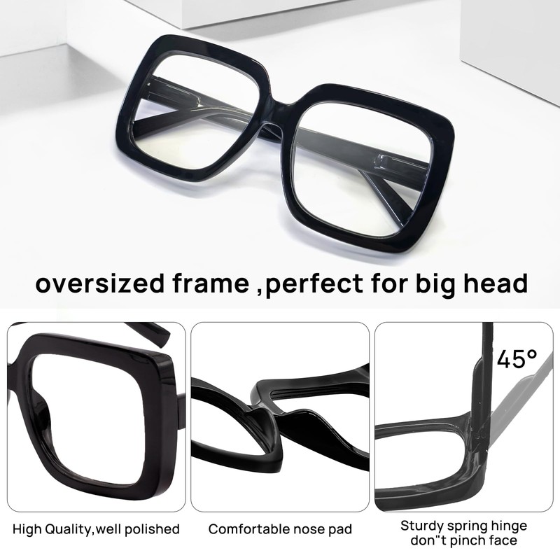 - Clear vision for reading: The oversized reading glasses for men has clear vision to read small print easily, reduce reflection & scratch resistant, easy to clean. Extra wide square readers ensures true color, no distortion, bigger field of view without turning your neck to easily get a clear vision.