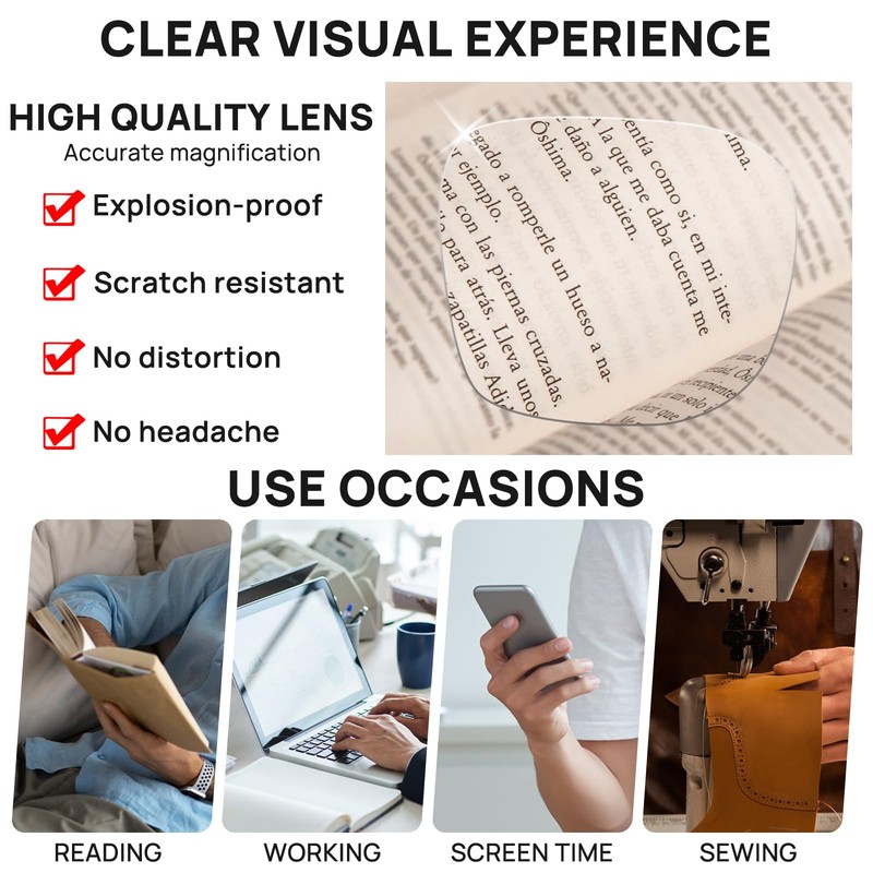 - Great Packing: The big readers come with a small screwdriver to tighten the screws regularly; a glasses rope to avoid losing during cooking, shopping, walking (hang around your neck); a soft cloth to keep readers clean; a portable bag to carry; a Brand packaging box as a beautiful gift for friends and families!