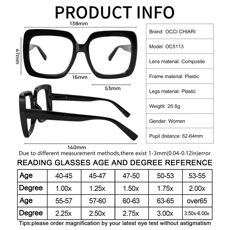 - NO SHOPPING RISK: If you are not completely satisfied with our large readers, or there is any damage occurs to the readers, please contact OCCI CHIARI service team ,we will solve the problem within 24h! You have no risk to try!