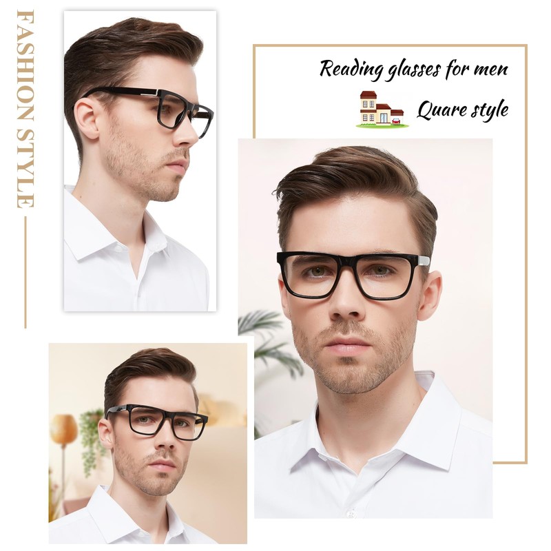 - Transparent & high definition lens : Men’s reading glasses stylish 3.00 with HD lens make the square readers super clear& no color difference& restore the true color&water proof. Even the small spots can see very clearly. Ranges from 1.0+ 1.5+ 2.0+ 2.5+ 3.0+ 3.5+ 4.0 +5.0+ 6.0+ Choose the correct one and enjoy the digital time.