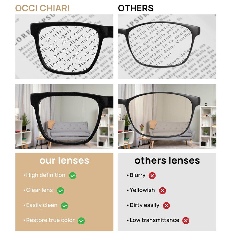 Lens magnification/strength: OCCI CHIARI reading glasses 1.0x 1.5x 2.0x 2.5x 3.0x 3.5x 4.0x 5.0x 6.0x.You can choose the magnification according to the actually need,let OCCI CHIARI reading glasses become an important part of your life!