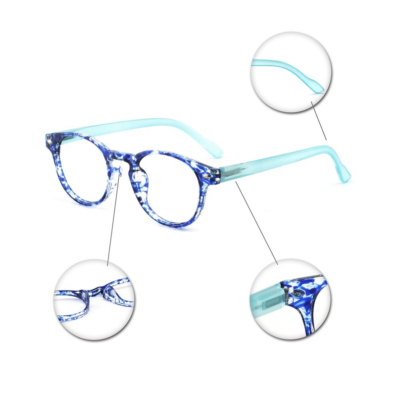 - The consist of floral and translucent Purplish Blue eyewear combines the elements of fashion,which let you look more young.And it is easy to match your cloth,adding color to your daily dress.Durable Spring hinge, Light Weight, Comfortable Eyewear frame.No color difference, bring you good visual experience.