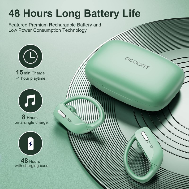 occiam occiam Wireless Earbuds Bluetooth Headphones 48H Play Back Earphones in Ear Waterproof with Microphone LED Display for Sports Running Workout Green