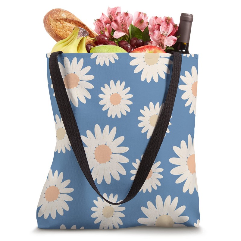 Ocean Blue Daisy Flower Pattern Spring Blossom Florals Tote Bag