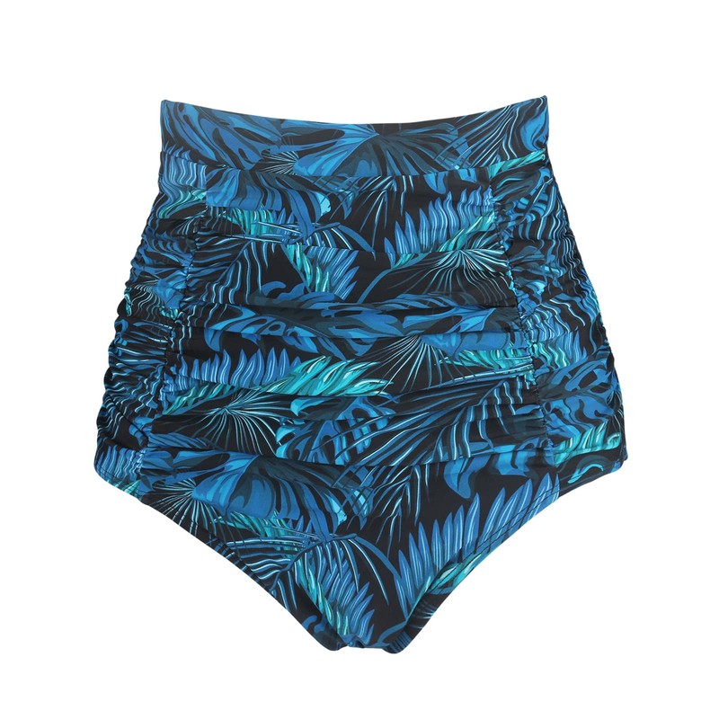 Ocean Blues Women's Blue Leaf High Waisted Bikini Bottom Full Coverage Swim Bottom Size XX-Large