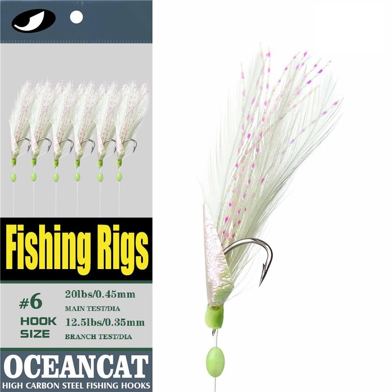 • OCEAN CAT 10 Packs Feather Fish Skin 6 Hooks Fishing Rigs with String Hooks Glow Fishing Beads High Carbon Hooks for Freshwater Saltwater Fishing Lures Bait Rig Tackle