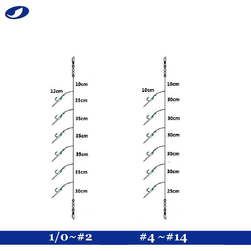 • SPECIFICATION: Size:2/0#,1/0#,1#,2#,3#,4#,5#,6#,8#,10#.10 Packs/Package.each pack including 6 rigs with hooks rigged well, glow beads on the bottom of hooks, and swivels on the end of fishing line.