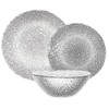 Ocean Decor Glass Dinnerware Set: Fancy Set of Textured Clear Glass Dinner Plates and Bowls - Includes Dinner Plate, Salad Plate, and Soup Bowl - Service for Four - 12 Piece Glass Dishes Set (Spark)