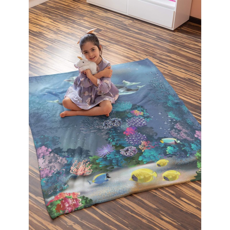 Ocean Sea Fish Soft Throw Blanket All Season Microplush Warm Blankets Lightweight Tufted Fuzzy Flannel Fleece Throws Blanket for Bed Sofa Couch 60"x50"