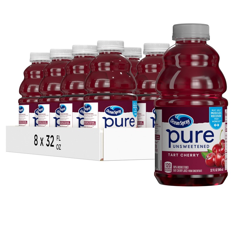 Ocean Spray® Pure Unsweetened Tart Cherry, 100% Tart Cherry Juice, 32 Fl Oz Bottle (Pack of 8)