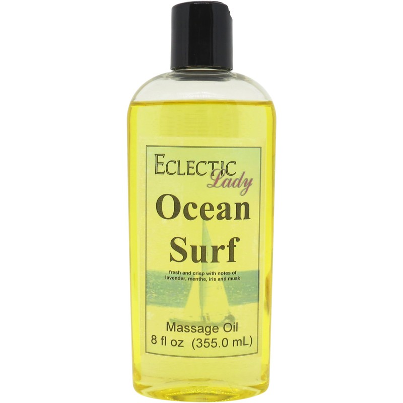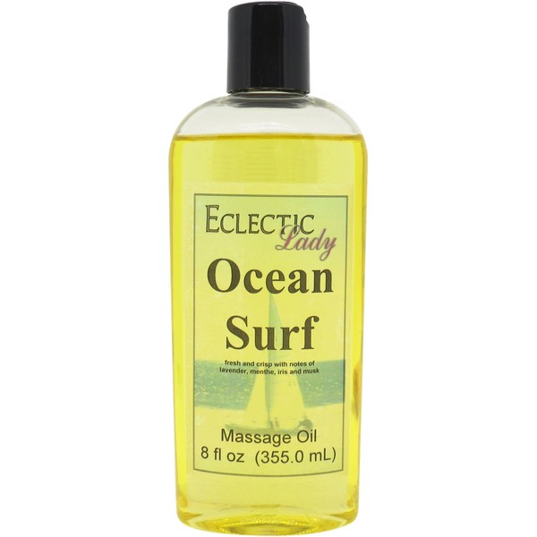 Ocean Surf Massage Oil, 8 oz, with Sweet Almond Oil and Jojoba Oil, Preservative Free, Perfect for Aromatherapy and Relaxation