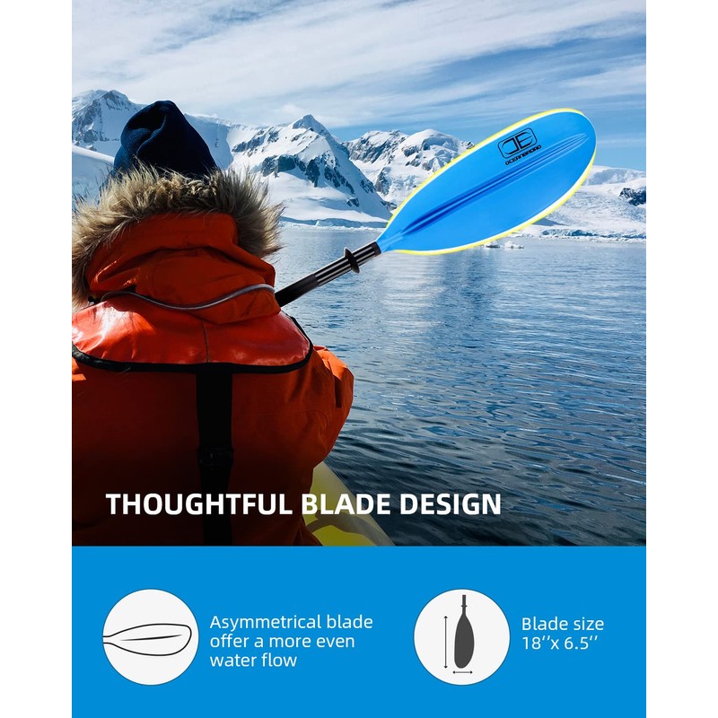- MADE TO LAST: This kayak paddle is with high-quality aluminum alloy shaft (1.1mm shell thickness) and fiberglass reinforced PP blade. The material combination ensures a stiff and made to last kayak paddle at a better price. It’s a perfect choice for starters and intermediate kayakers.
