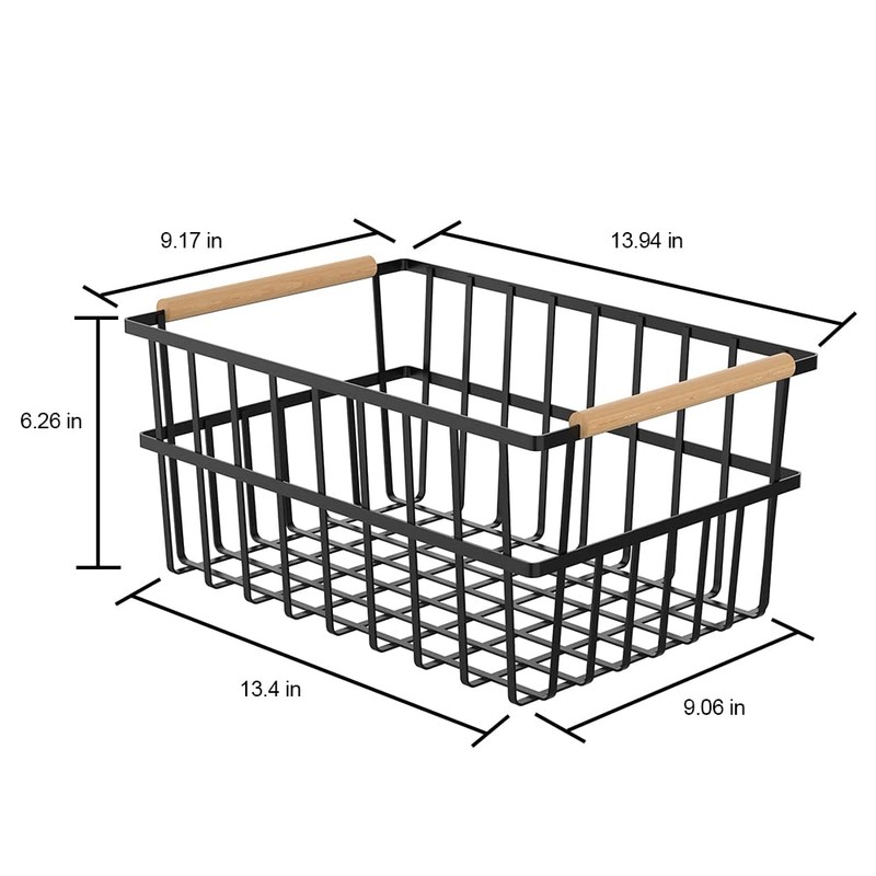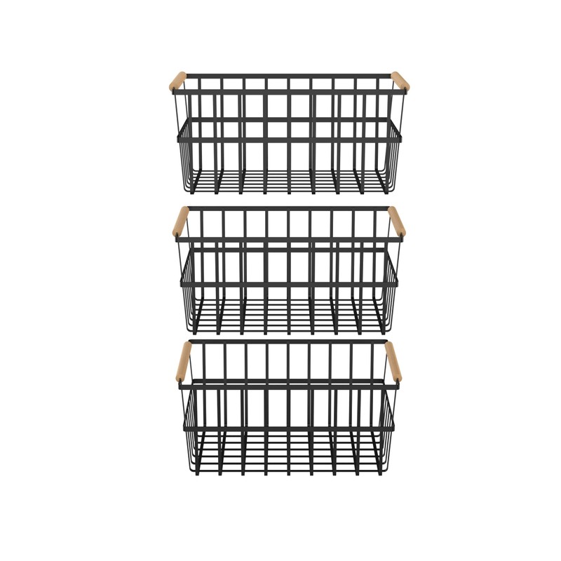 Oceanstar Metal Wire Organizer Bin Handles WBHB1910 Basket Set, One-Size, Black, 3 Count