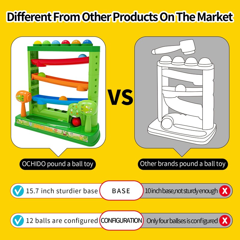 - BABIES PLAY SAFELY:These pounding ball toys are made of safe ABS plastic,fall resistant, no peculiar smell,safe and reliable.Toddler toy set Certified Conforms to us toy safety standards ASTM F963.The no small pieces or sharp edges,enlarged base more stable and will not be easily knocked on.kids are well-protected and mothers to worry free when babies play.The perfect toddler gifts age 3 old year.