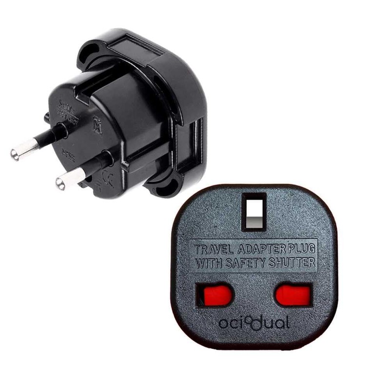 OcioDual 2X UK to European Plug Adapter, Travel Plug Adapter, Type G to Type E and F Plug, Model YD-9625, 221V/13A Black, 3-Pin to 2-Pin Converter, CE/RoHS Certification