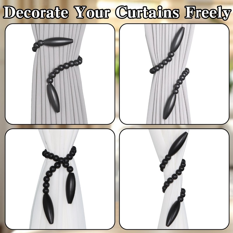 - Sturdy Wood Bead Curtain Tiebacks Crafted with premium natural wood beads and corrosion-resistant iron wire, these curtain holdbacks deliver long-lasting durability. Their smooth, non-toxic surface blends boho decor charm with practical curtain management, ideal for farmhouse-style living rooms and bedrooms.