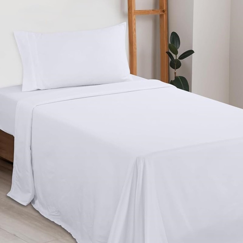 - Complete Set: Includes 1 flat sheet (66’’x 102”) with a 2-inch self-hem, 1 fitted sheet (39’’x 80’’) with a 15-inch deep pocket, and 1 pillowcase (20’’x 30’’) with a 4-inch hem.