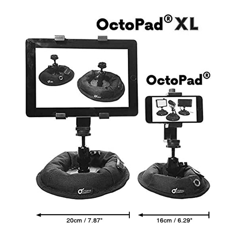 - 【Perfect Stable Support Platform】The OctoPad tripod base stand can hold fast to all sorts of surfaces, specially for the using on slopes, uneven and smooth surfaces. Patented Weighted non-slip mat design offering far superior stability to that of existing mini tripods and suction cup supports.