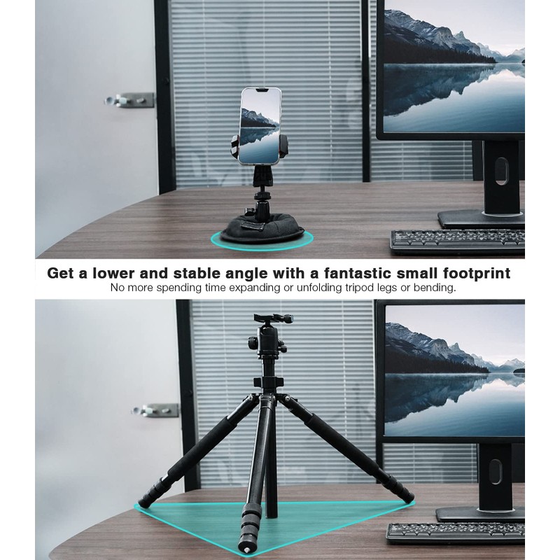 - 【Small Footprint & Easy Use】7.9" x7.9"x 4.33", endure weight of 8kg. Get a lower and stable angle with a fantastic small footprint, without having legs in the shot that have to be edited out later. Much easier and faster to use than a mini-tripod, no more spending time expanding or unfolding tripod legs or bending to your liking. Great for tabletop, macro and time-lapse photography.