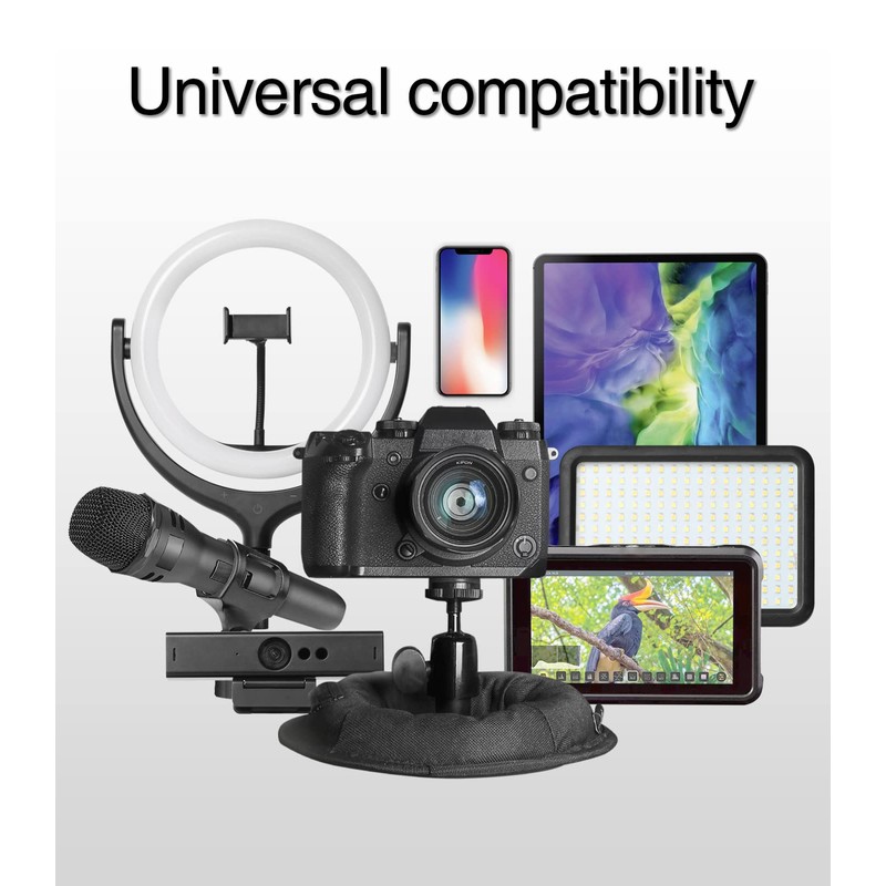 - 【Universal Compatibility & Nice Design 】With standard 1/4 interface, the OctoPad is adaptable to the most of Cameras, DSLR, smartphones, Gopros, gimbals, lights, flashes, monitors, microphones, webcams, projectors (smartphones/tablet holder NOT included). The 360° universal ball-head clamps securely under all conditions with non-slip silicone, it is removable so that you can re-configure at will.