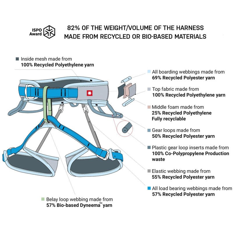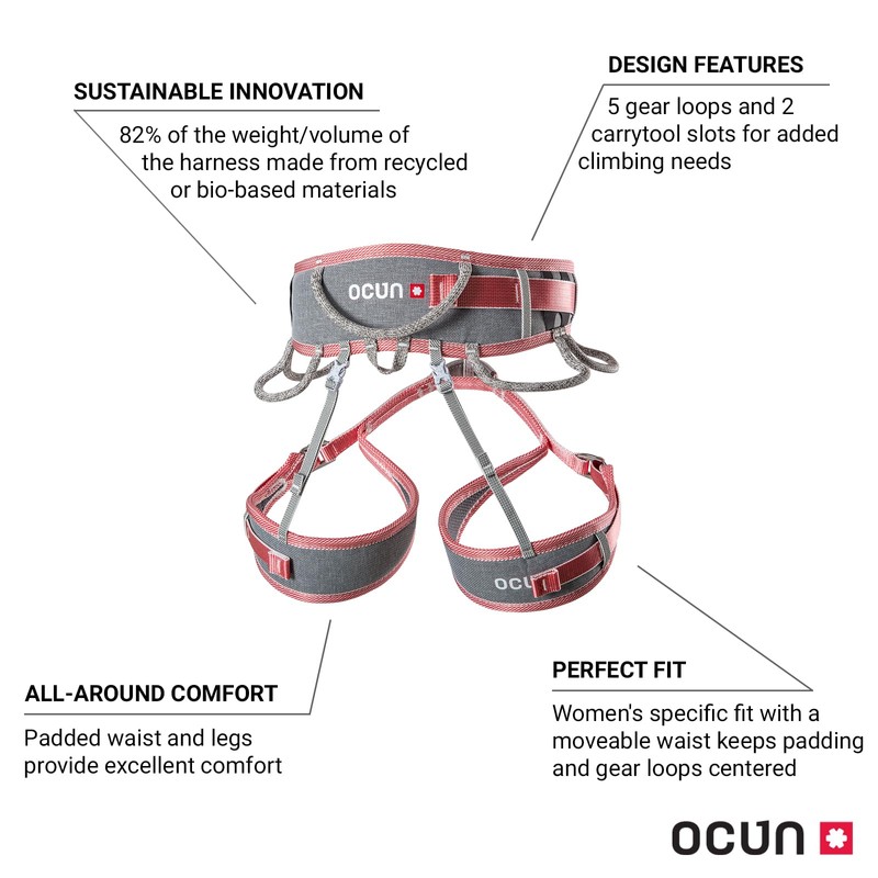 - USE CASE: Comfortable 3-buckle all-around harness constructed from recycled materials and anatomically designed specifically for women. The harness is equipped with 5 gear loops, wear and tear indicator, water repellent PE foam padding, and 2 carry tool slots ideal for trad, Big Wall, alpine, via ferrata climbing and both indoor and outdoor sport climbs.