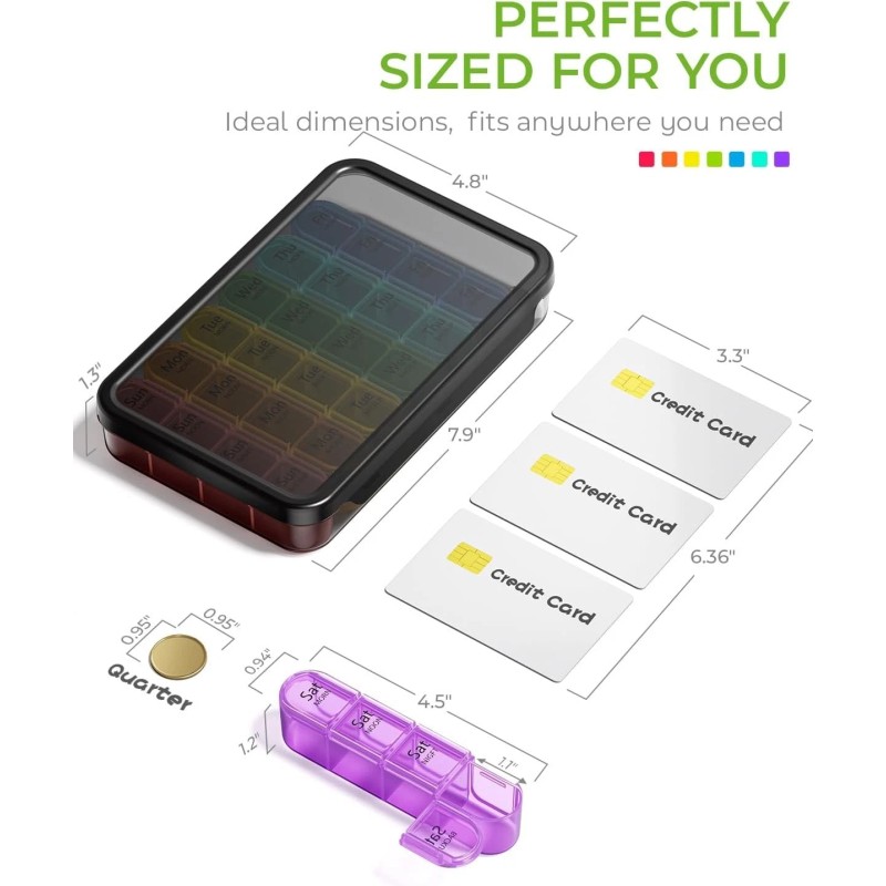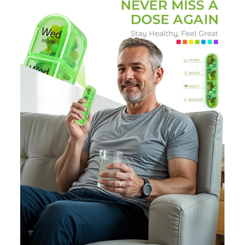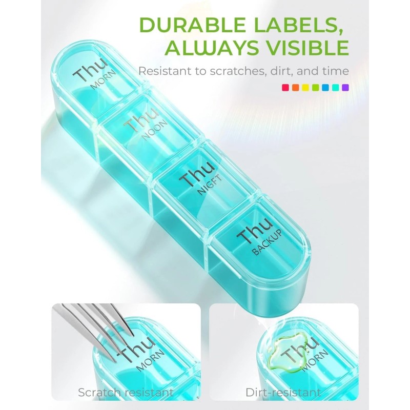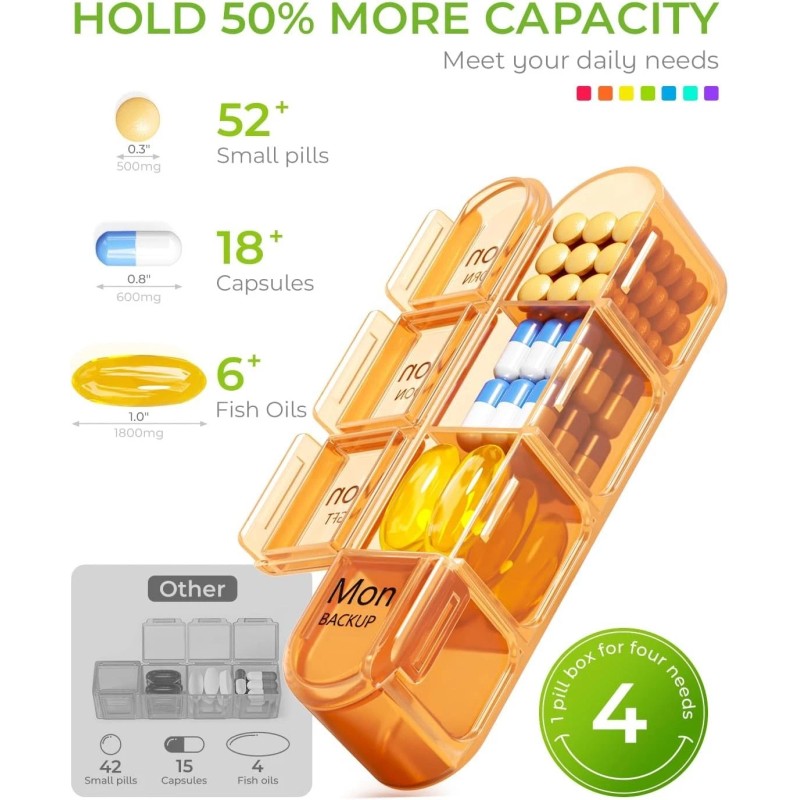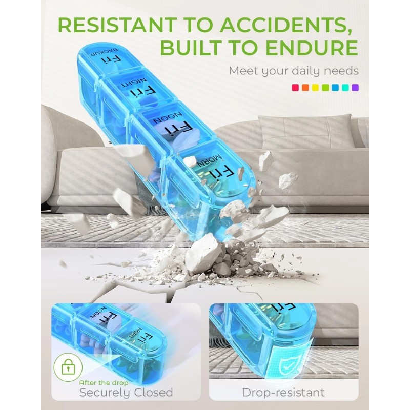 Odaro Weekly Pill Organizer 4 Times a Day, BPA Free Daily Pill Box 7 Day, Large