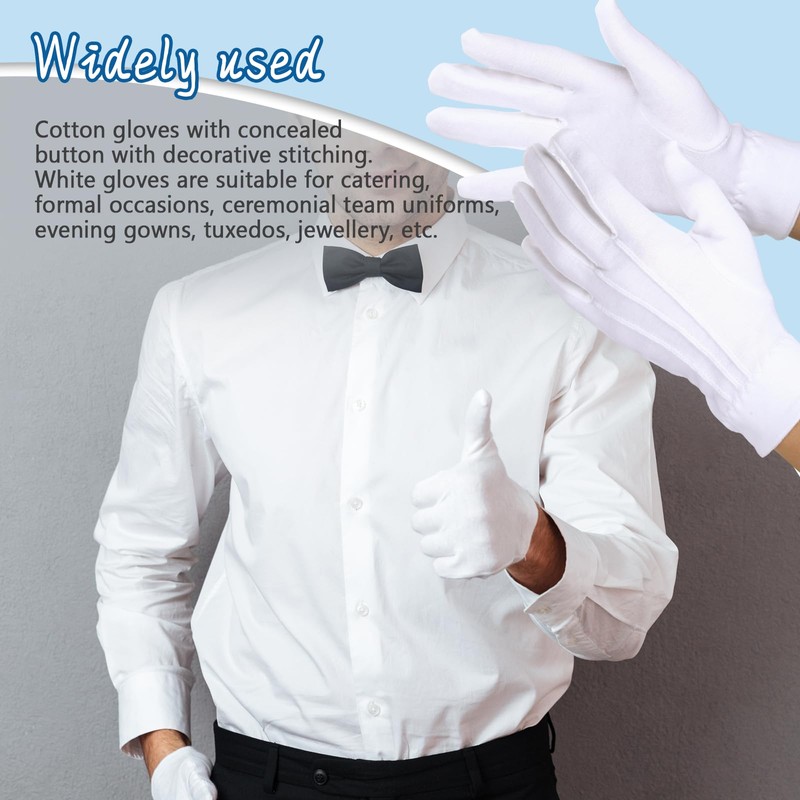 - Better material gloves white: our cotton gloves thin are made of high-quality cotton fabric, 35 grams per pair, soft and breathable, lightweight and durable, protects your hands and is suitable for many formal occasions