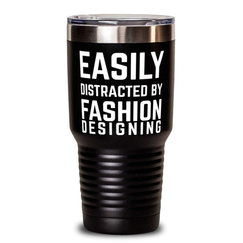 ODDITEES Funny Fashion Designer Tumbler Easily Distracted By Fashion Designing Tumbler 30oz Stainless Steel Black