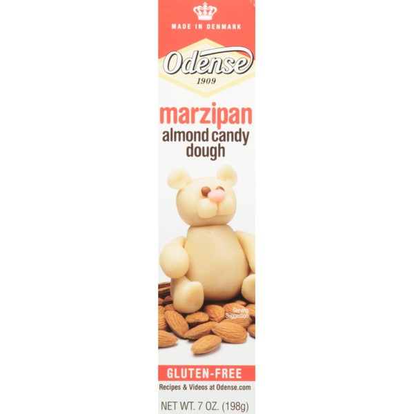 ****Odense Marzipan ** Marzipan is a candy dough with a high ratio of sugar to almonds. It's perfect for decorating your baked goods, whether you're making candy figurines (like the bear pictured on the box!), candies and bonbons, or covering a cake. You'll find this sweet, rich, flavorful candy dough adds a touch of whimsy and a delicious flavor to any occasion.**