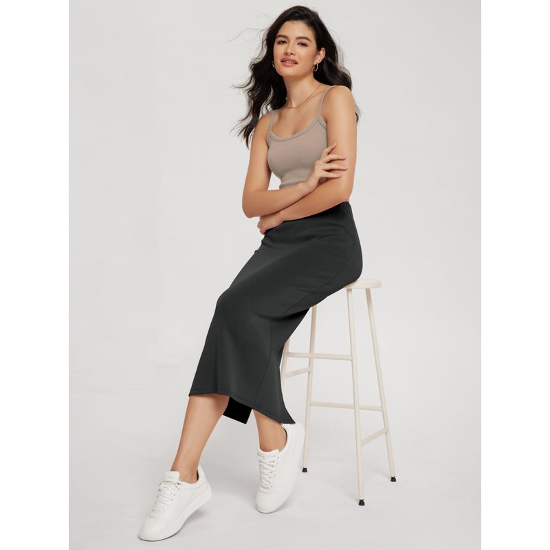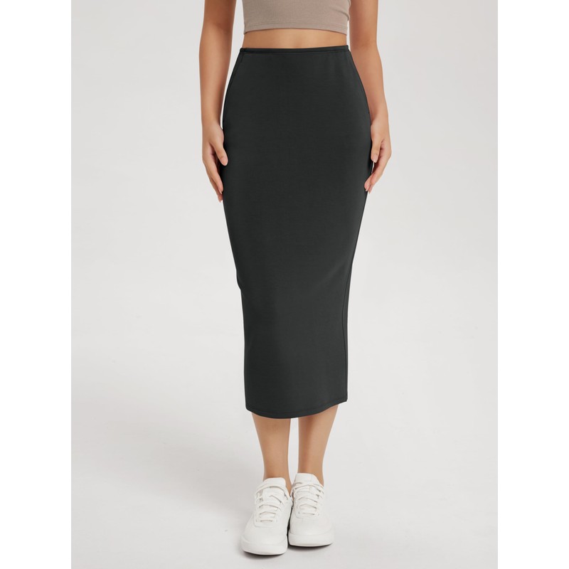 ODODOS Modal Soft Midi Skirt for Women Back Slit High Waist Casual Long Pencil Skirts with Pockets, Black, X-Small