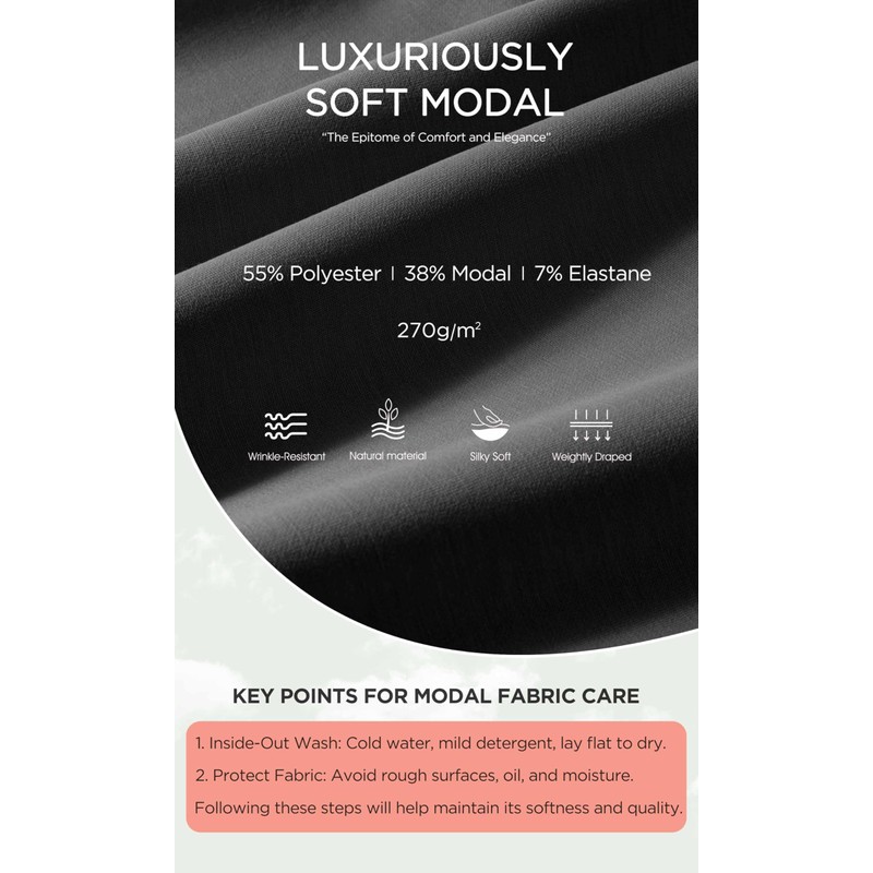 - Modal Soft: Made of ultra soft modal fabric blend with polyester and spandex, 270g/m² medium weight fabric, weightly draped, moisture absorption and wrinkle-resistant, keep the shape of the skirts well.