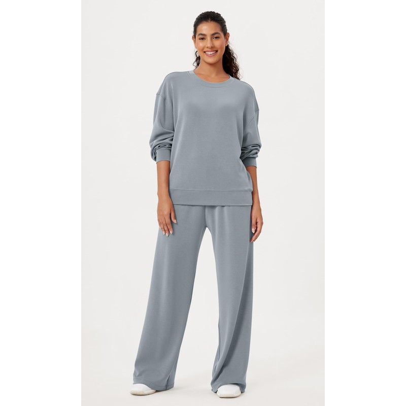 ODODOS Modal Soft Oversized Sweatshirts for Women Crew Neck Long Sleeve Relaxed Pullover Tops, Grey Blue, Medium