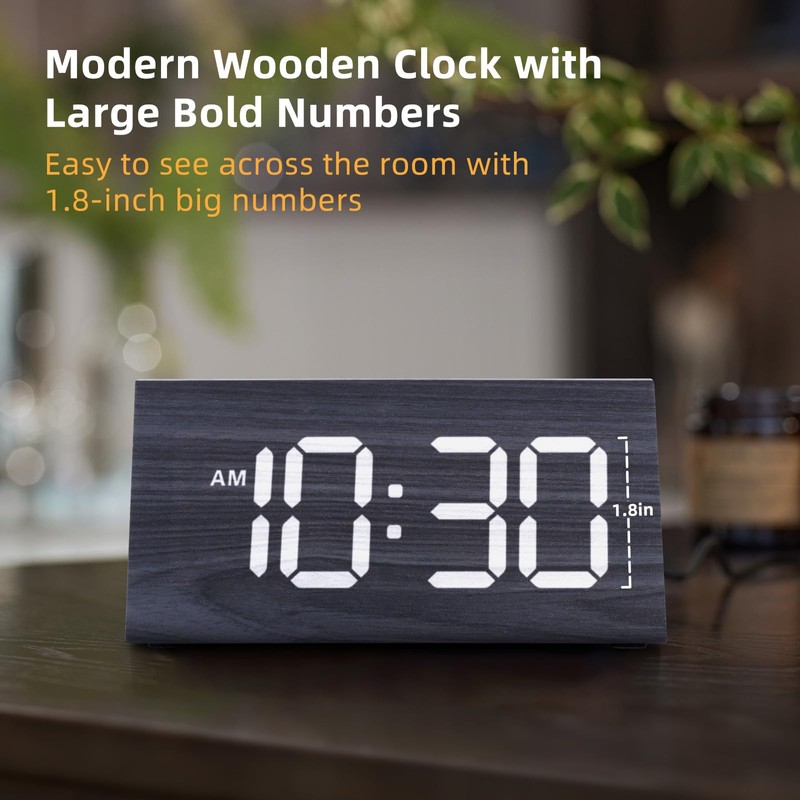 • WOODEN DIGITAL CLOCK WITH LARGE NUMBERS DISPLAY: Featuring a 1.8-inch large number display that make it easy to read from anywhere in the room. Its classic natural wood finish complements any décor, perfect for desks, nightstands, or shelves.