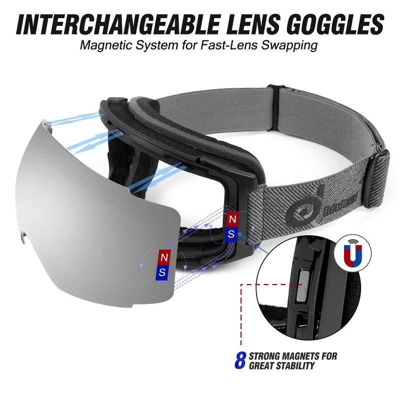 - Interchangeable Lens System:Amazing magnetic detachable lens design, makes this goggles easier changing different lens. Swap for day/night & different weather. Perfect for sunny, cloudy days and at night!
